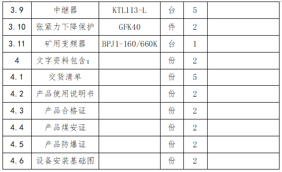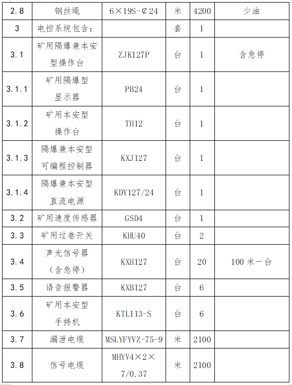 3.整機(jī)配套設(shè)備如下(2000米巷道):
