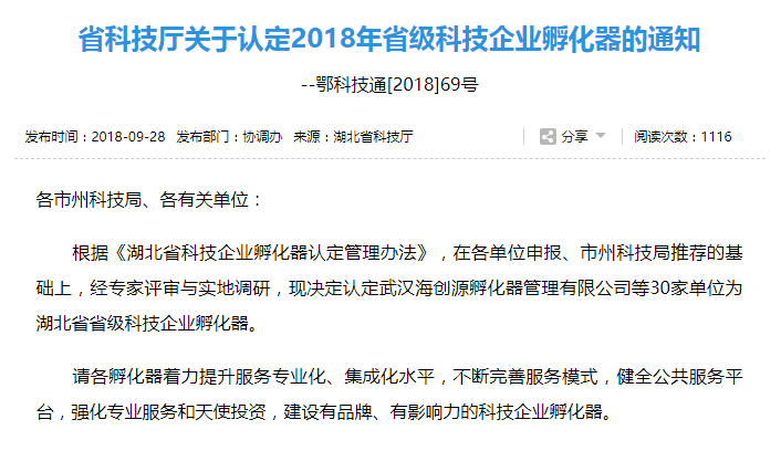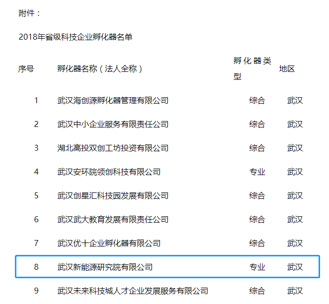 9月28日,湖北省科技廳公布新認(rèn)定76家省級(jí)眾創(chuàng)空間、30家省級(jí)科技企業(yè)孵化器。其中武漢新能源科技企業(yè)孵化器被認(rèn)定為省級(jí)科技企業(yè)孵化器。也是武漢唯一一家入選的新能源領(lǐng)域的專業(yè)化孵化器。