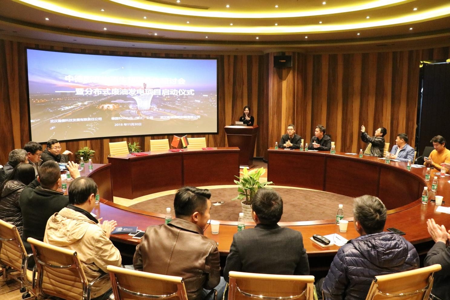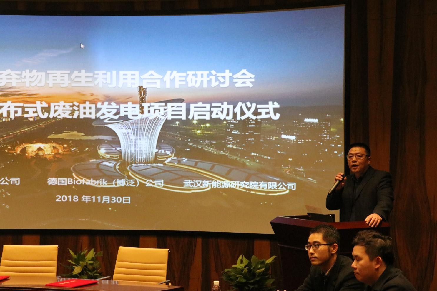 中德均為實(shí)體經(jīng)濟(jì)大國和制造業(yè)大國,均將發(fā)展新能源、環(huán)保等戰(zhàn)略性新興產(chǎn)業(yè)作為未來政府工作重點(diǎn),綠色、低碳發(fā)展理念深入人心。近日,由德國Biofabrik(博泛)技術(shù)公司、武漢瀚德科技發(fā)展有限責(zé)任公司、武漢新能源研究院共同舉辦的“中德廢棄物再生利用合作研討會(huì)暨分布式廢油發(fā)電項(xiàng)目啟動(dòng)儀式”在新能源研究院召開。