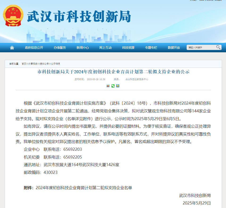 武漢市科技創(chuàng)新局公示了